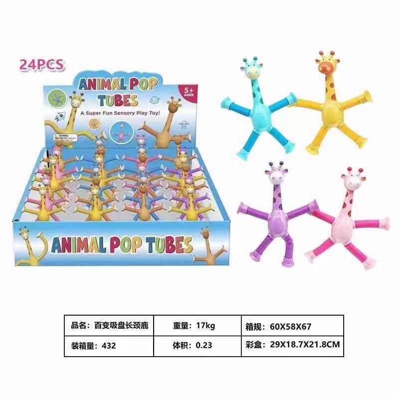 爆款卡通吸盘伸缩管长颈鹿发光拉伸管长颈鹿益智新奇减压玩具代发