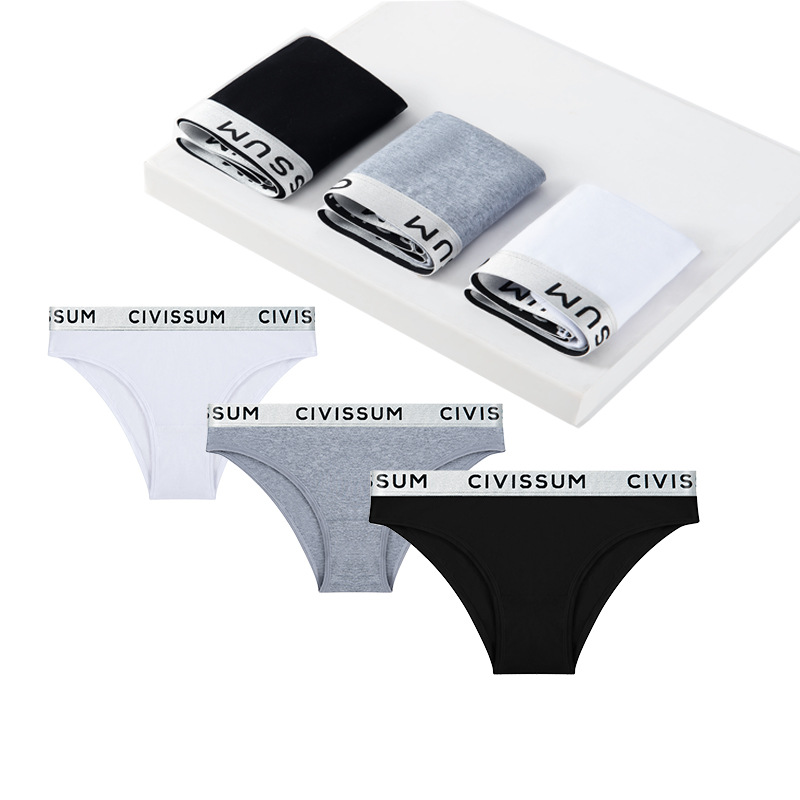 经典银色腰边纯棉女士低腰内裤学生纯色三角裤半包臀全包臀