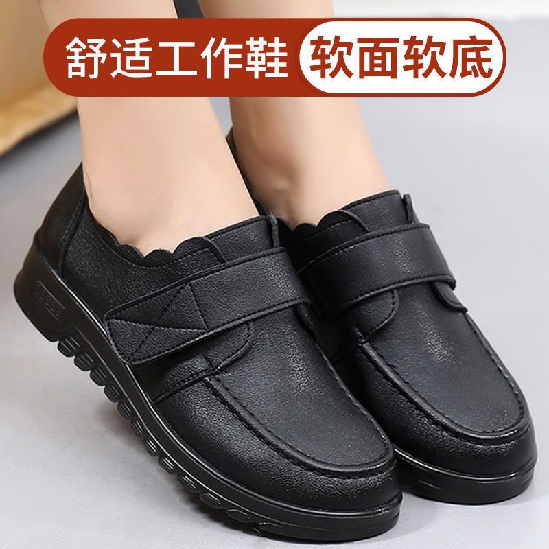 肯德基防滑工作鞋女士黑皮鞋舒适柔软餐厅厨房中年妈妈鞋单鞋平底