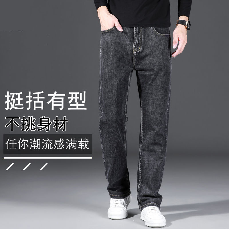 夏天薄款阔腿牛仔裤男士宽松直筒季新款休闲高腰弹力中年长裤子