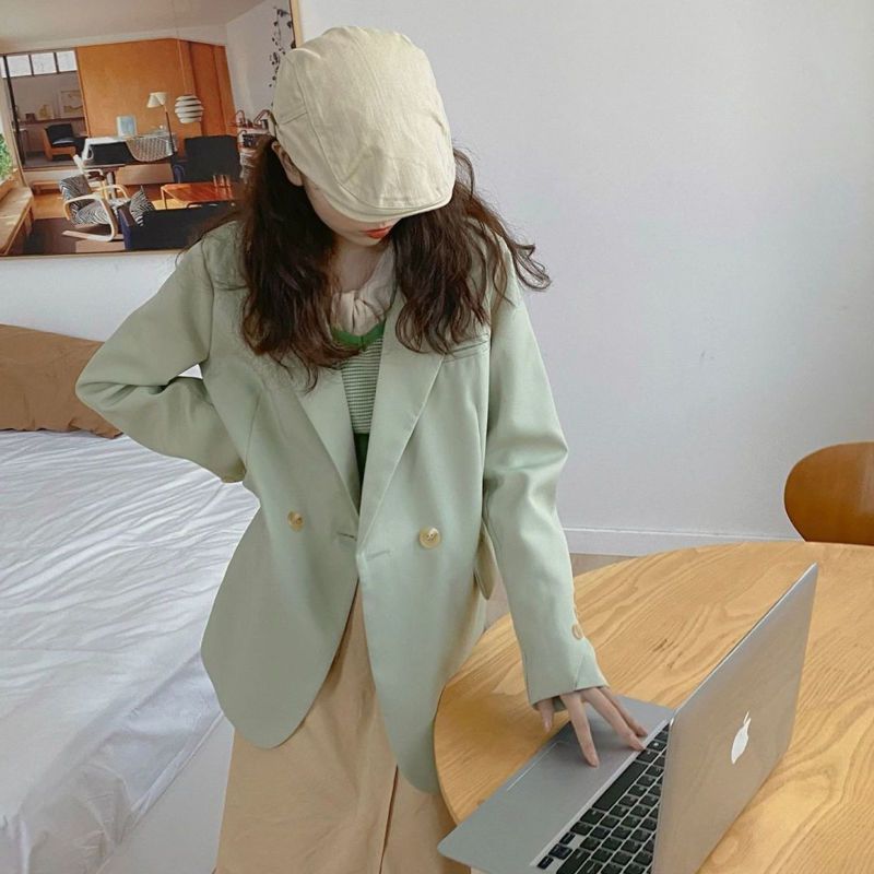 韩版西装薄荷绿色外套女装春秋2022新款设计感小个子减龄炸街西服