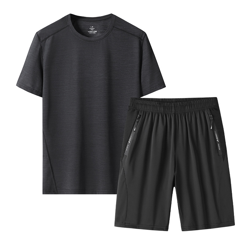 男士运动套装夏季2023年中老年薄款大码短袖短裤加大加肥冰丝套装