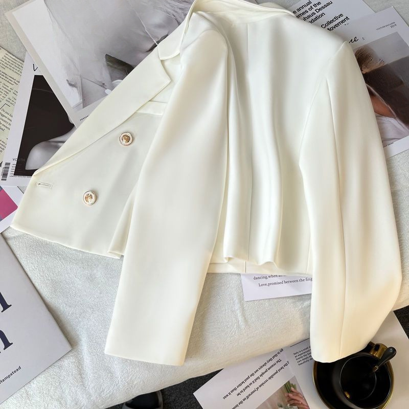 双排扣白色西装外套女修身2023年春季纯色小个子气质长袖短款西服