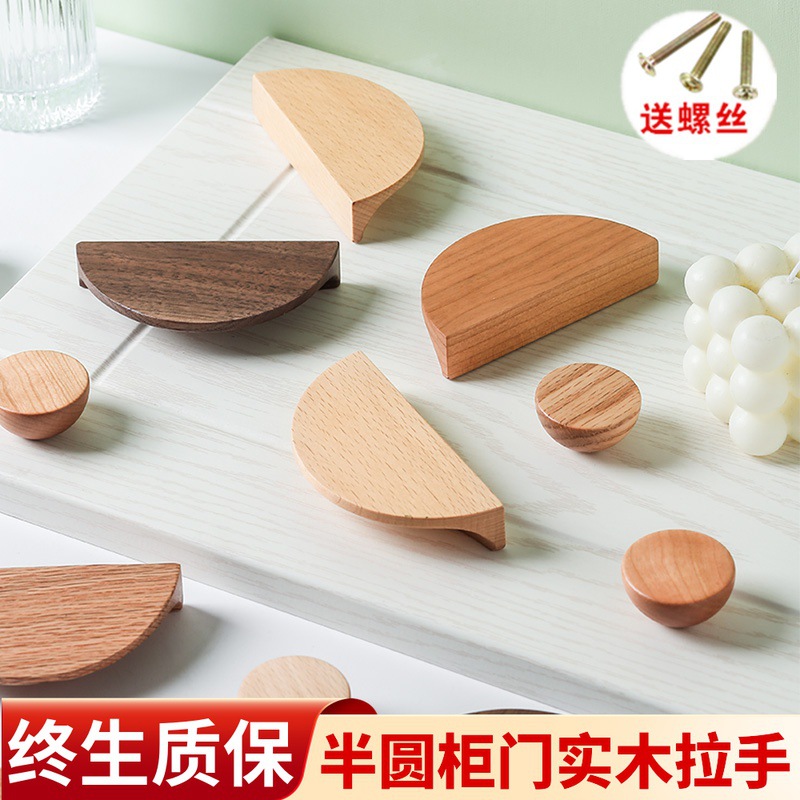 半圆柜门实木拉手日式简约衣柜鞋柜原木把手单孔圆形抽屉木质北欧