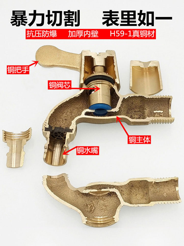 全铜加厚洗衣机水龙头室户外洗车浇花奶嘴普通快开4分水嘴一分二
