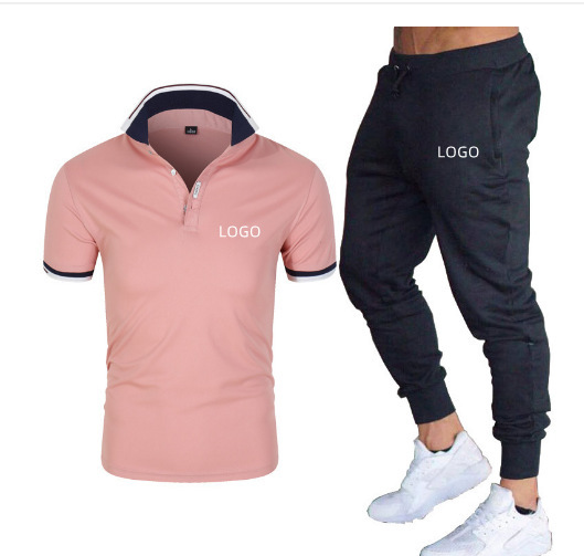 2022新款厂家现货欧美男士夏季休闲气质纯色短袖长裤两件套套装
