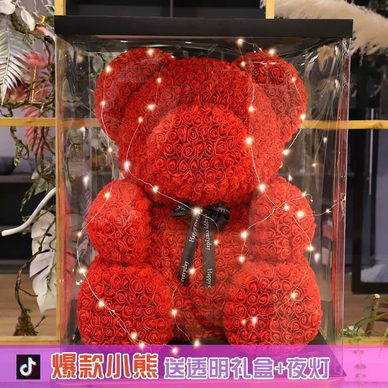 玫瑰花熊七夕情人节纪念日生日送女友创意巨型香皂花小熊跨境