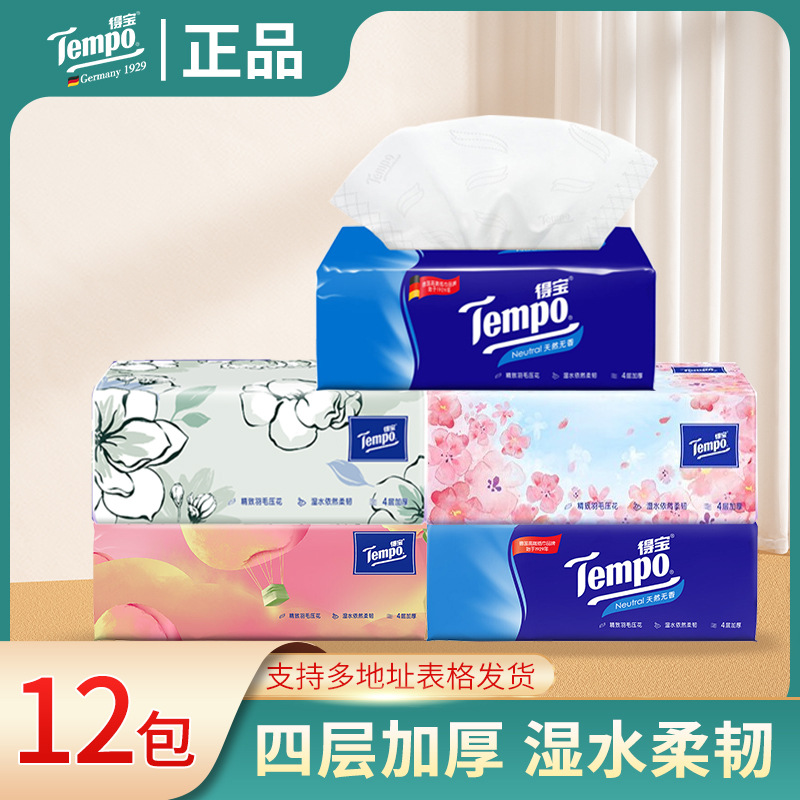 得宝抽纸面巾纸巾抽取式加厚餐巾纸抽卫生纸4层90抽 工厂批发包邮