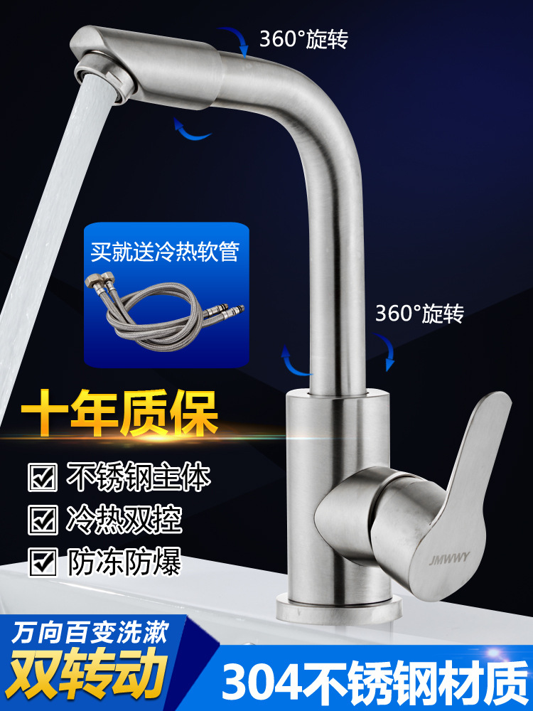 九玫王洗手盆冷热单冷二合一水龙头全铜卫生间家用面盆台盆不锈钢