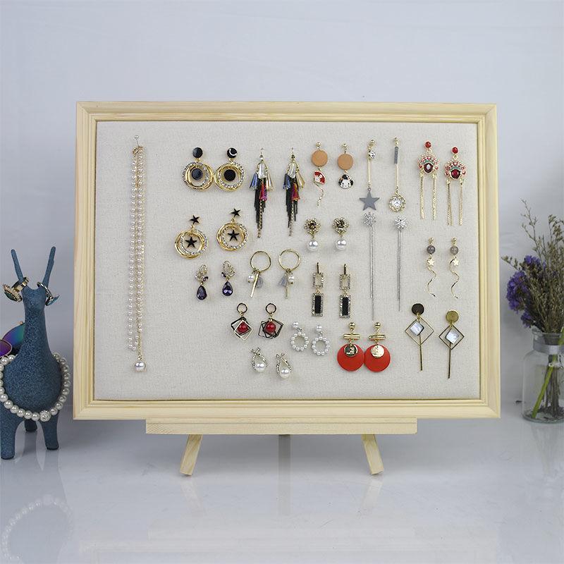 实木相框耳环展示板挂墙耳钉架子手链收纳道具家用项链陈列首饰架