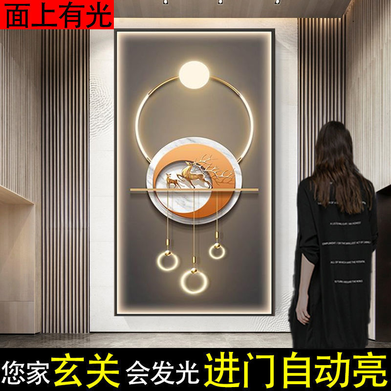 入户玄关装饰画走廊过道带灯可发光挂画竖版简约北欧客厅