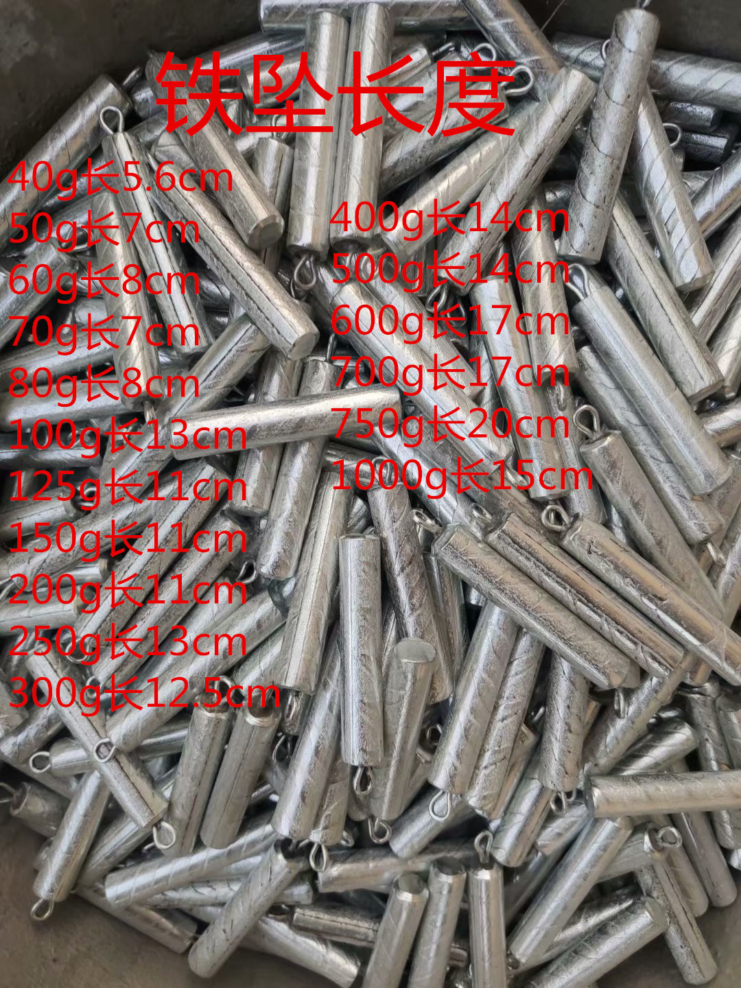 海钓铁坠远投铁砣锚鱼长条圆柱形带环环保钢坠抛竿船钓配重钓鱼坠