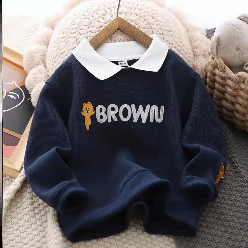 男童加绒卫衣2022秋冬新款儿童绣花洋气polo衫加厚保暖打底上衣潮
