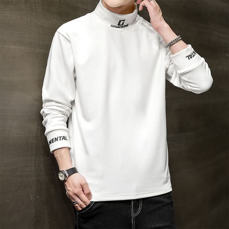 秋冬款男士高领纯色双面绒半高领卫衣仿摇粒绒套头保暖立领打底衫
