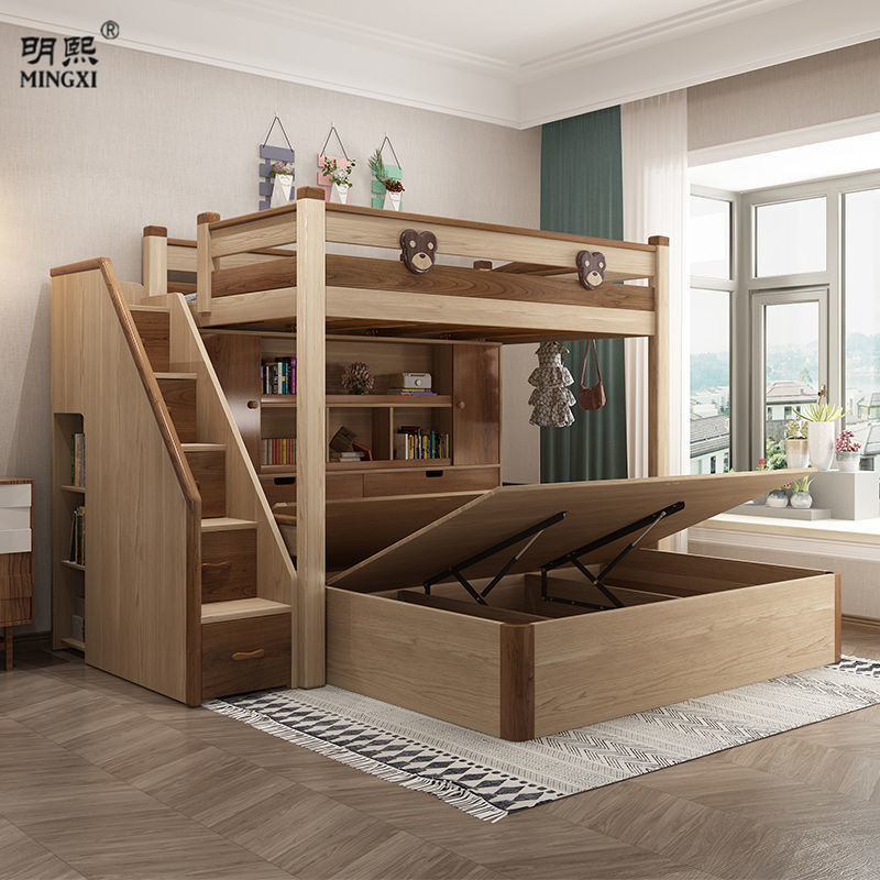上下床错位儿童床子母床高低床上下铺木床双层床组合床一件代发