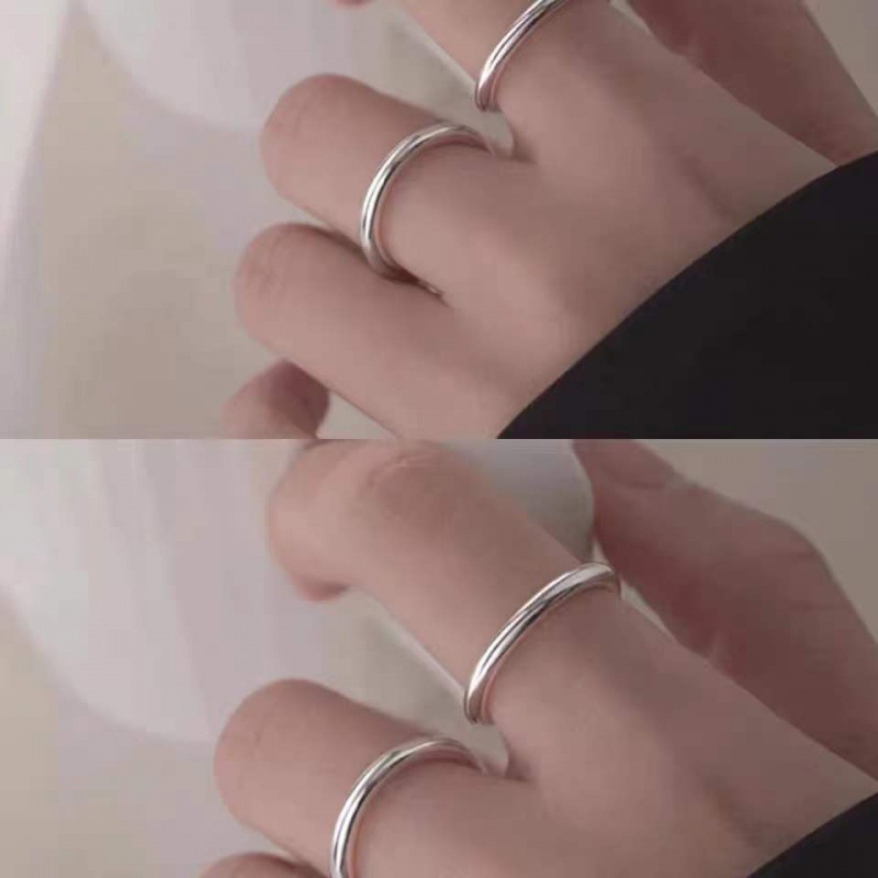 戒指女足银素圈男女简约免费刻字尾戒古法指环磨砂情侣对戒戒指女