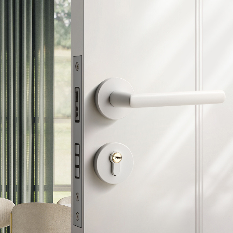 简约奶油白色卧室门锁静音磁吸房门锁家用室内木门锁内门把手