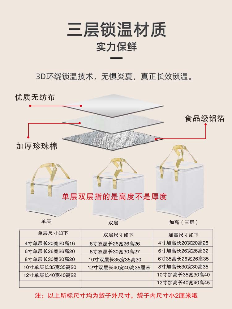 白色手提加厚生日蛋糕保温袋配送外卖专用袋冷藏袋铝箔保冷袋