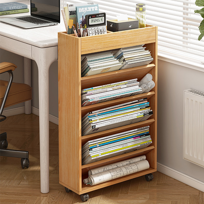 书桌旁小书架侧边收纳神器桌边置物架可移动带轮学生书本边柜窄缝