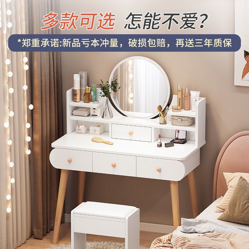 轻奢梳妆台卧室 现代简约收纳柜一体简易小型北欧化妆桌网红ins风