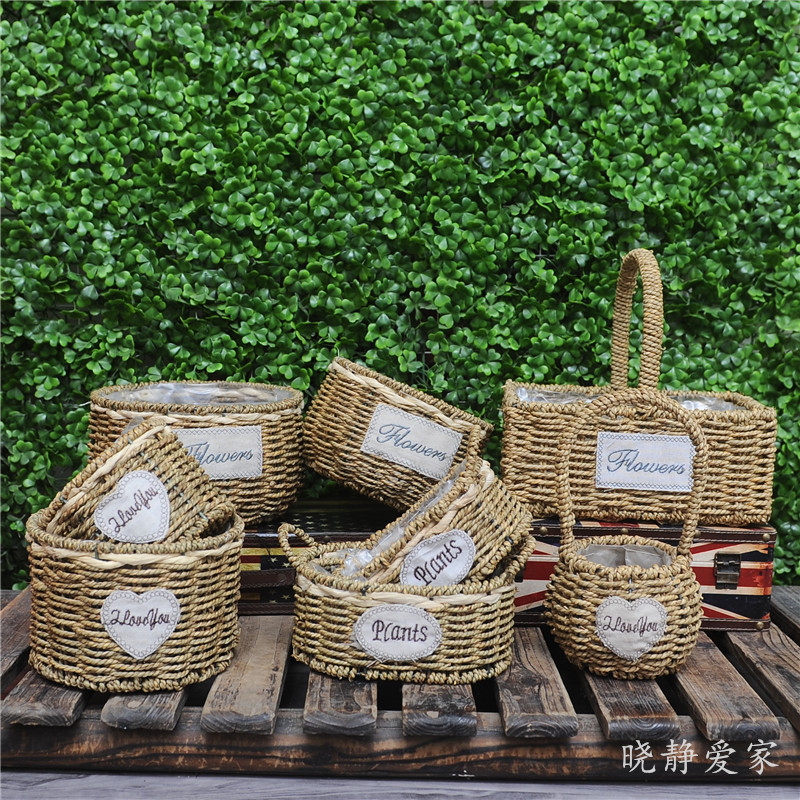插花花篮批发草编花盆藤编柳编田园手工绿萝多肉创意壁挂手提摆件