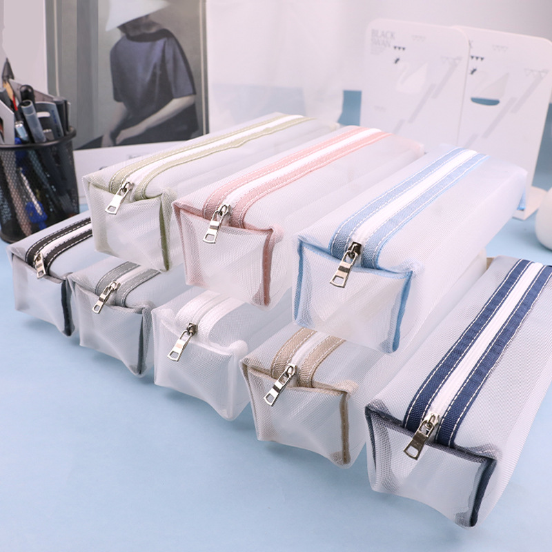 网红透明大容量简约ins化妆品收纳袋高颜值尼龙网纱立体方形笔袋