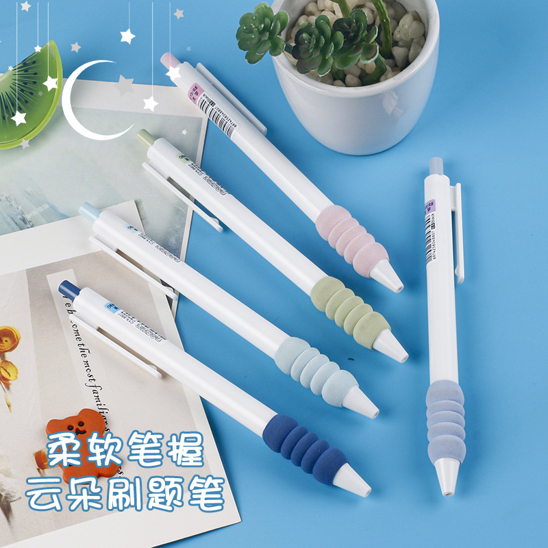 云朵云握刷题笔速干小白笔ST笔头按动中性笔高颜值学生文具圆珠笔