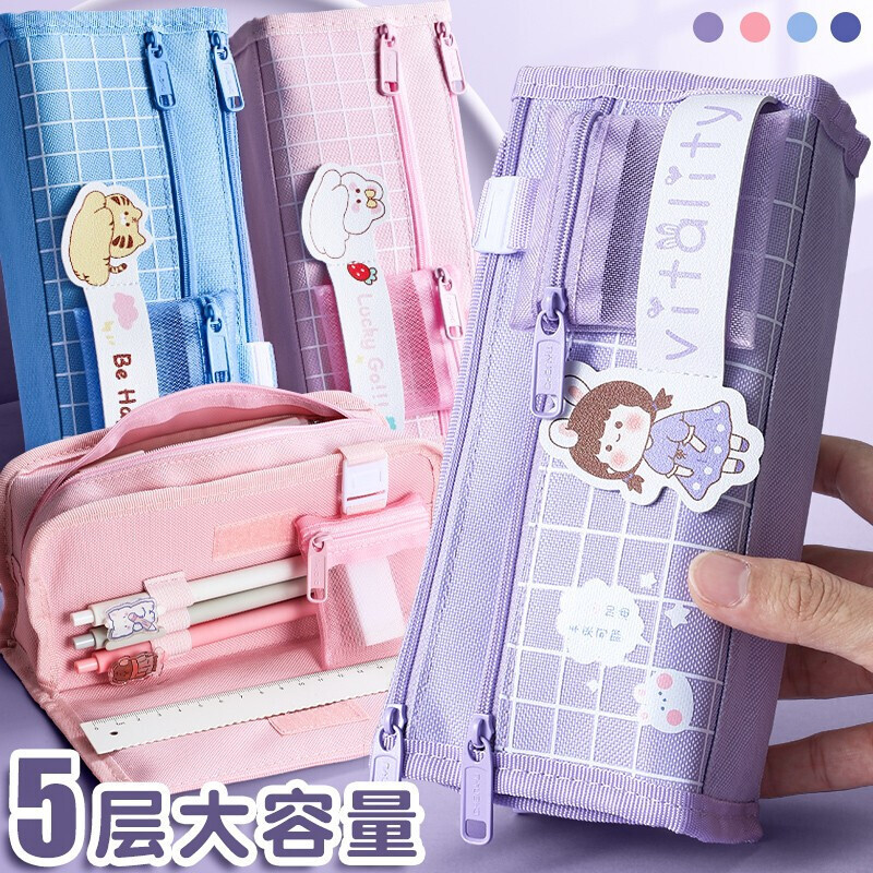 西语大容量笔袋 小学生多功能文具收纳袋多层高颜值初中女铅笔盒
