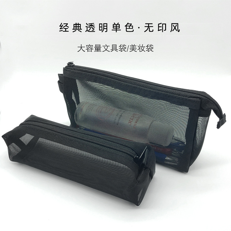创意简约无印风透明网纱笔袋拉链袋文具袋考试文具袋网红爆款