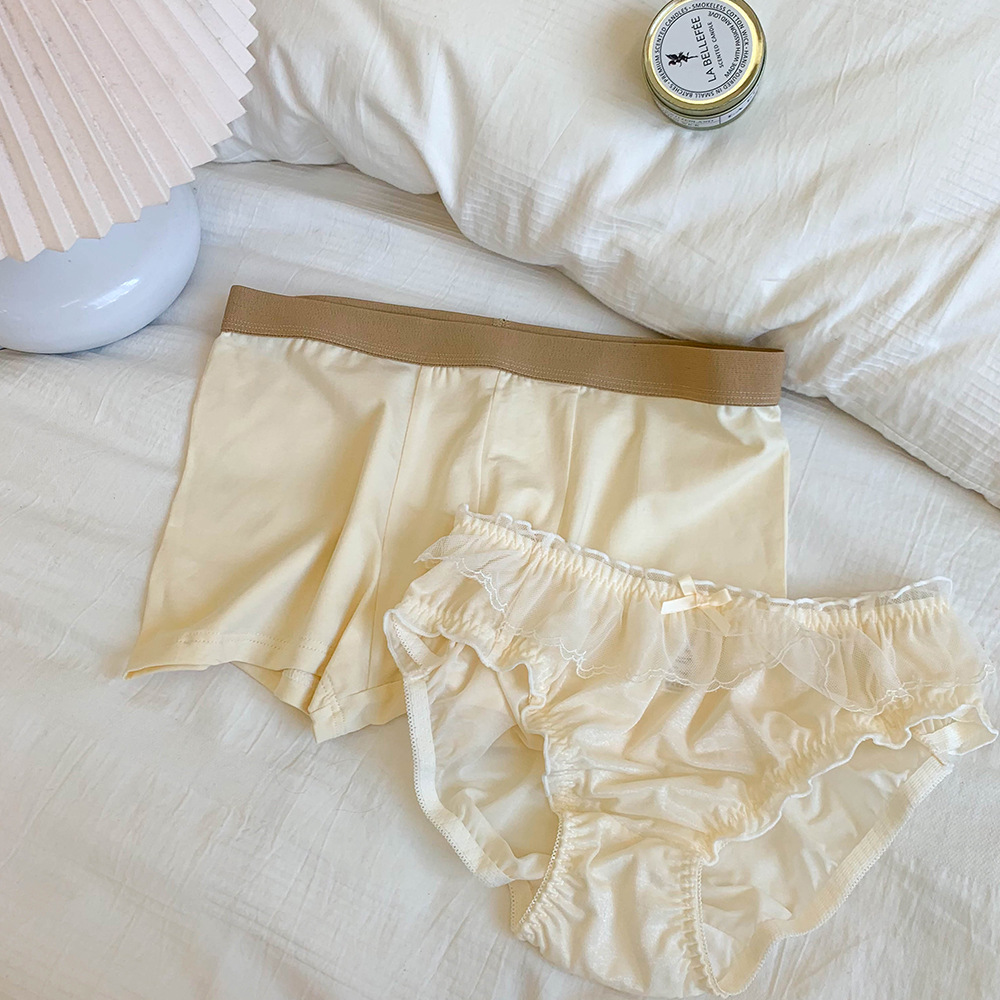 情侣内裤一男一女夏季女士中腰款无痕日系少女性惑男士平角四角裤