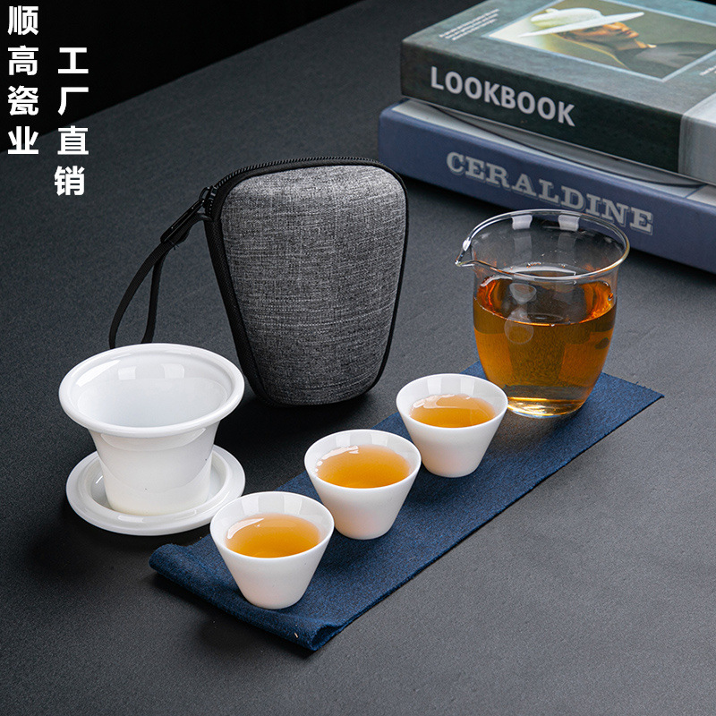 批发便携旅行茶具极简羊脂玉瓷玻璃快客杯一壶三杯个人商务礼品