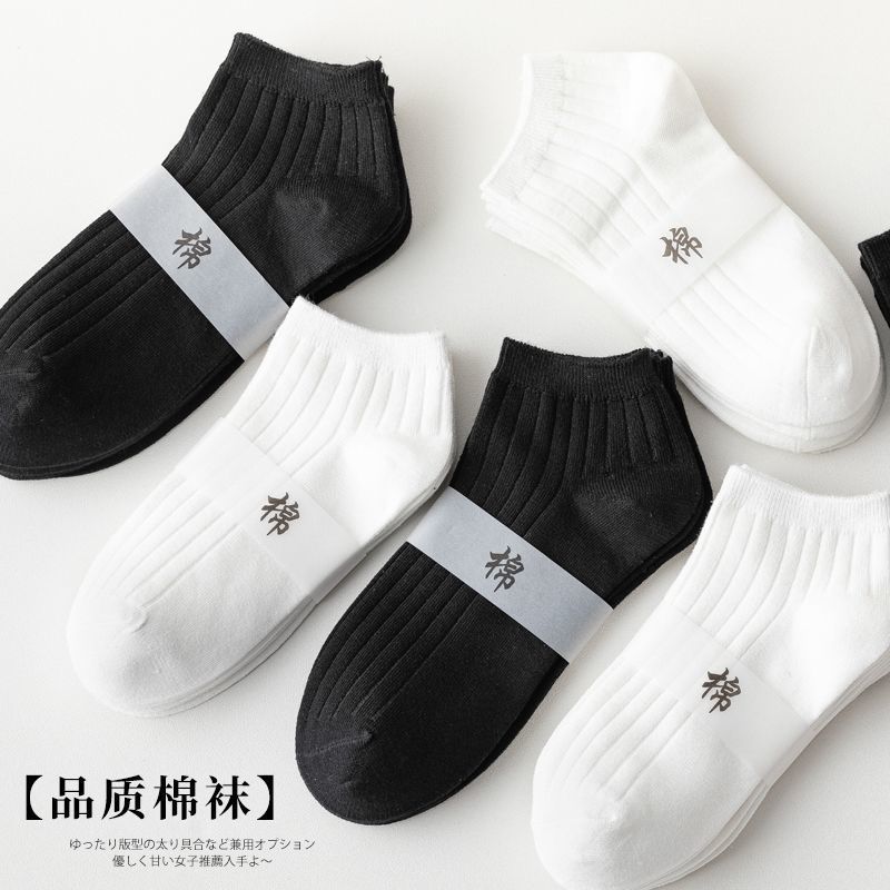 袜子男短袜夏季纯色低帮浅口船袜黑白色运动防臭棉袜薄款