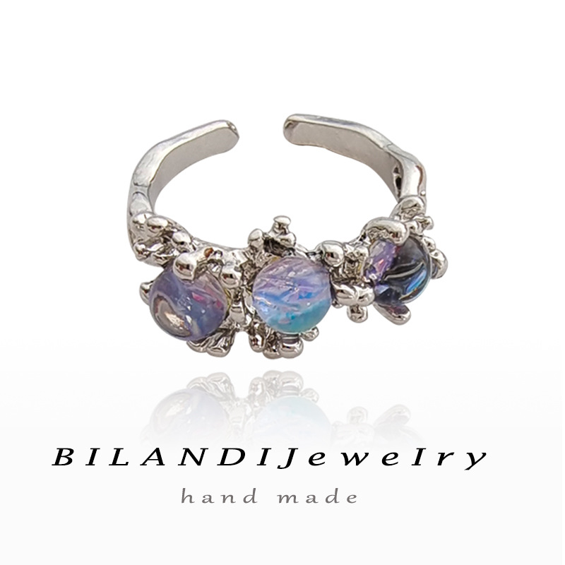 日韩国炫彩玻璃宝石开口戒指网红不规则指环新款ins风食指戒H5247