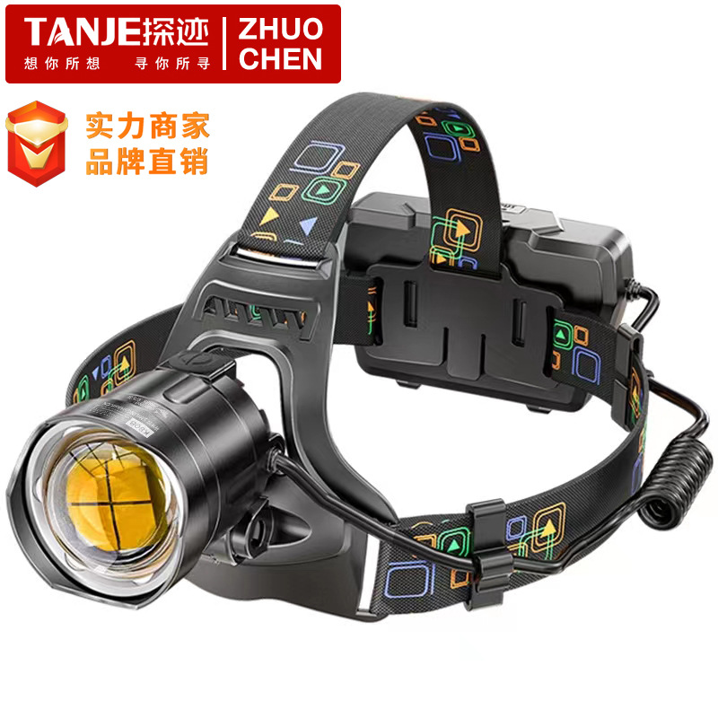 探迹大功率强光头灯充电户外徒步工地头灯施工调焦P70防水头灯