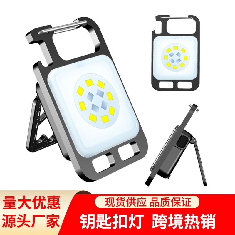 跨境新款钥匙扣灯 户外可充电迷你便携COB工作灯多功能强光手电筒