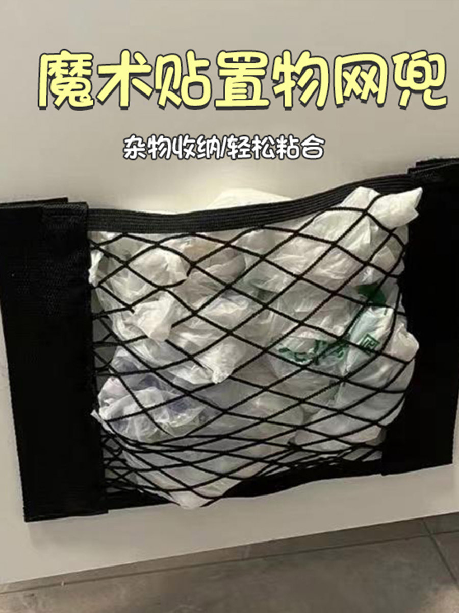 垃圾袋网兜免打孔车载收纳网兜创意家用门后置物架车内双层储物兜