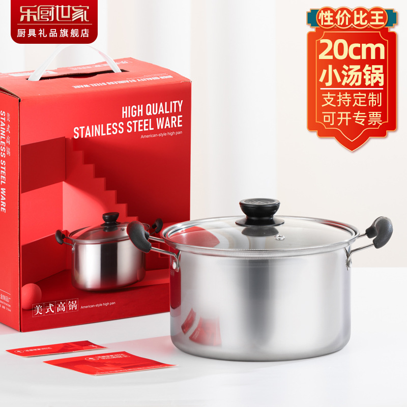 不锈钢锅直型小汤锅双柄美式高锅实用礼品锅具电磁炉锅小锅煲汤锅
