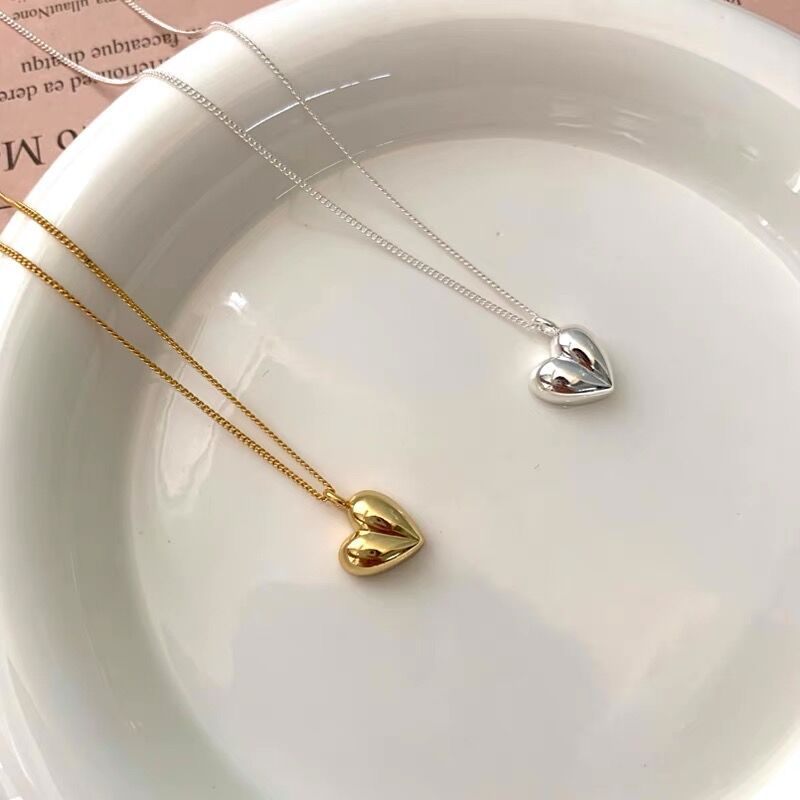S925纯银立体桃心爱心项链女韩国博主ins同款简约锁骨链高级感项