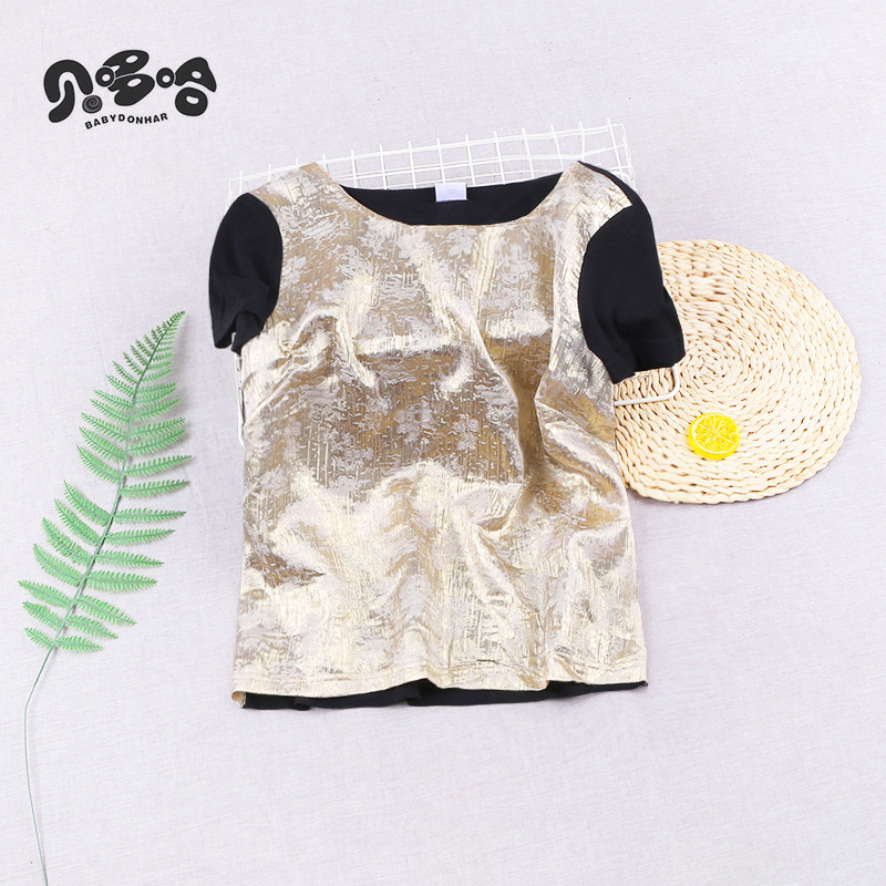 贝哆哈夏季短袖T恤女式拼接套头宽松汗衫常规圆领女士休闲上衣