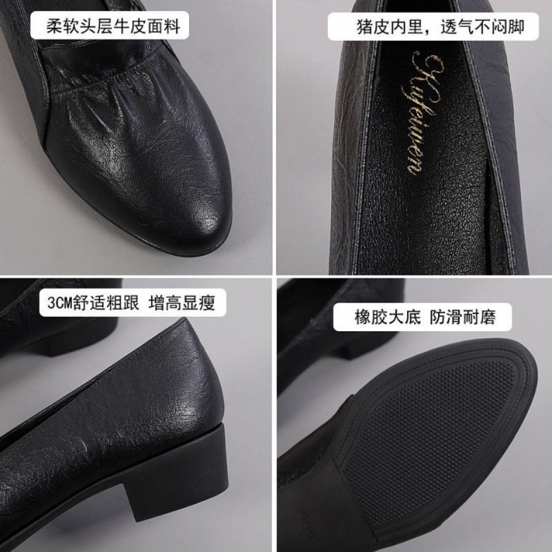 2023女新款春秋季妈妈鞋单鞋真皮软底中跟粗跟百搭女士皮鞋工作鞋