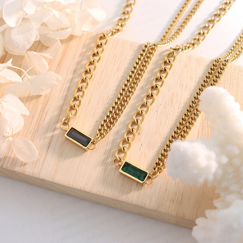 欧美复古镶嵌锆石双层粗链条套装项链女手链女生闺蜜首饰套装钛钢