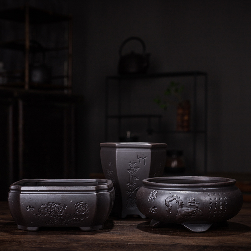 紫砂盆四方六方兰花盆菖蒲花卉绿植物盆栽大号手工多肉盆景栽盆