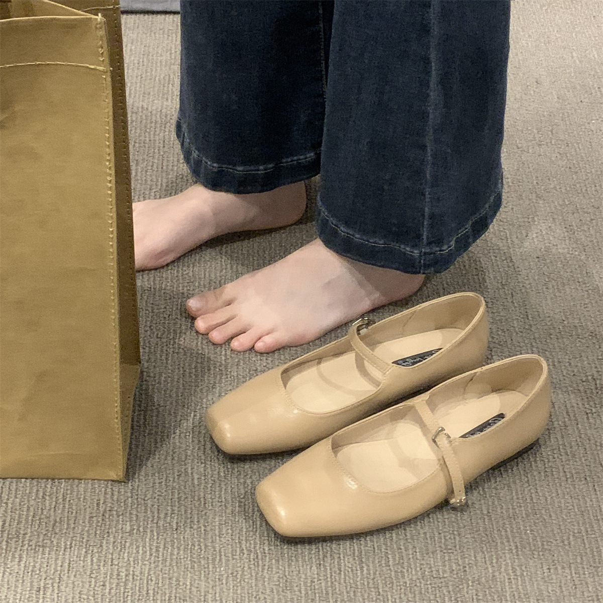 法式玛丽珍鞋女鞋子2023年春秋新款平底方头浅口一字带气质单鞋