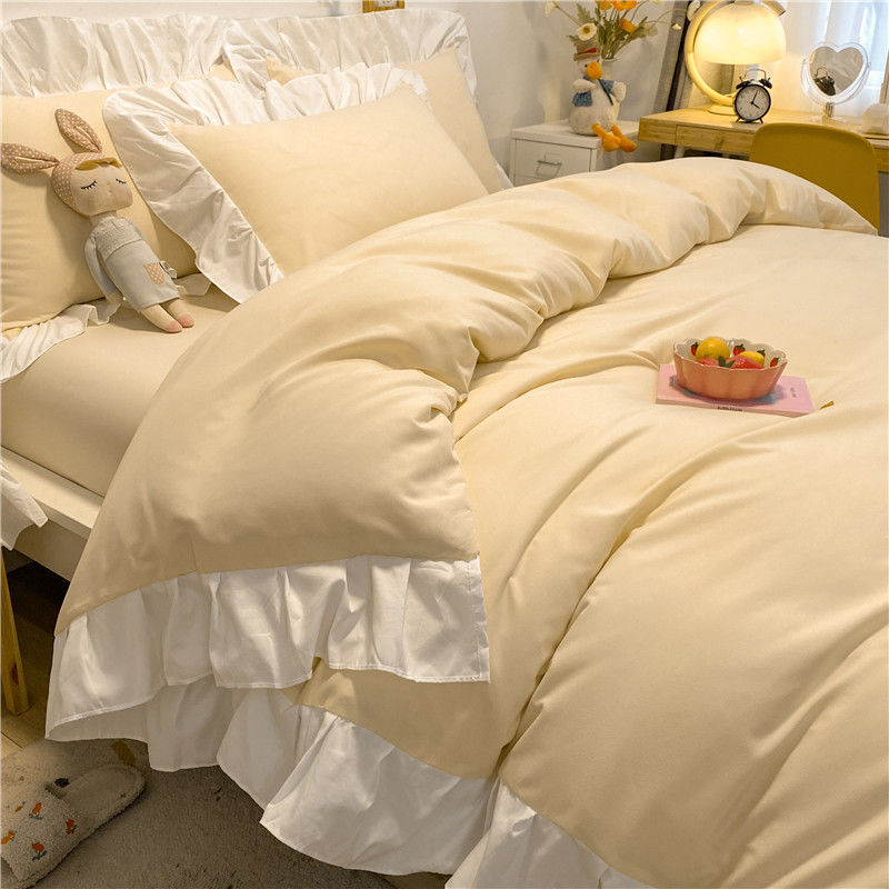 韩式小清新四件套少女心花边被套柔软床品单人三件套学生宿舍用