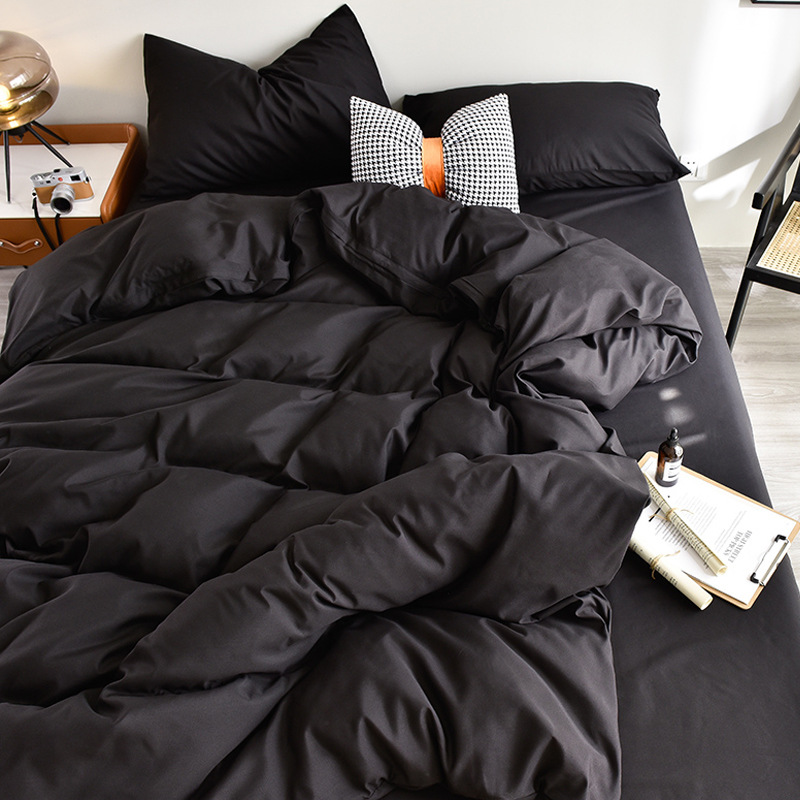 黑色个性四件套男士简约ins床单被罩潮流被套3三件套性冷淡风被套