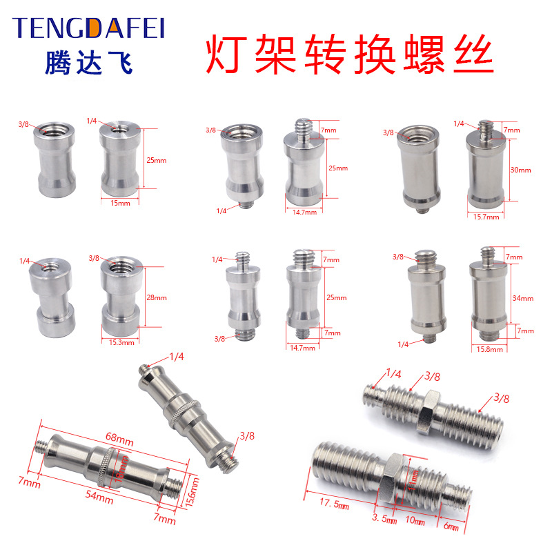 1/4公互转3/8公转接头三脚架云台摄影闪光灯支架底座M6M8转换螺丝