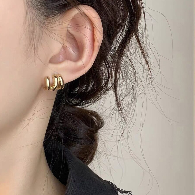 铜镀真金S925银针简约一字珍珠耳钉气质复古港风耳环新潮耳饰1176