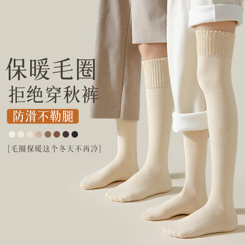 过膝袜子女秋冬季护膝长筒袜加绒加厚小腿袜冬天大腿长袜保暖棉袜