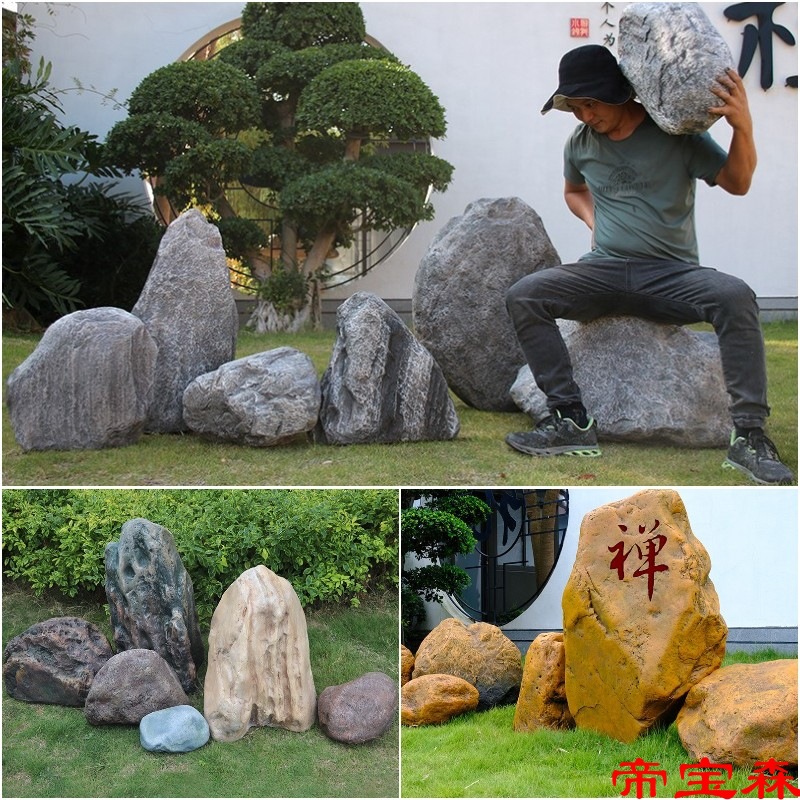 T庭院黄蜡石仿真假石头缺角户外造景装饰树脂泰山石摆件花园井盖