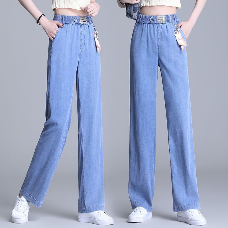 天丝休闲牛仔裤女2023新款夏季薄款冰丝垂坠感直筒阔腿裤拖地裤子